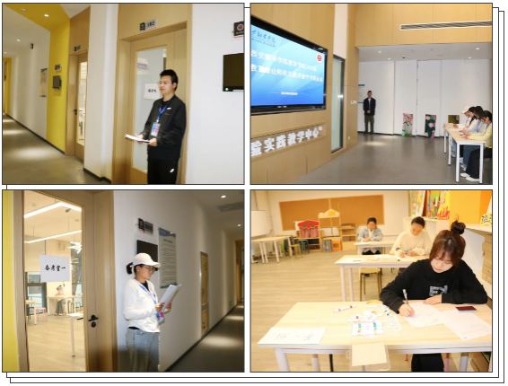 教育学院学前教育专业2024届师范生教师教育教学能力面试考核工作于4月20日在教育类专业实验实训中心举行,66名考生参加本次面试,共设7个考场,为了高质量完成面试工作,学院邀请了14位来自陕西省11所各级各类幼儿园的园长、保教主任及老师与我院7位专业教师共同担任面试考官,她们分别是西安市第二保育院保教副主任刘冬雨,陕西省军区机关幼儿园教师胡玉佳、张莉,陕西艺术幼儿园保教主任姜自兰,美伦天成幼儿园园长常晓晶,高新区第二十四幼儿园园长马艺萍,高新区第二十六幼儿园保教主任郝博雅、教师朱倩,爱稚家儿童成长中心幼儿园园长苟红梅,加拿大独角兽启智园园长郭娜,西安悦田育幼园园长卫钰,洛南县古城镇阳光幼儿园园长李敏颖,西安翻译学院幼儿园园长姜晓波、保教主任惠莹莹、我院专职教师吴琼、杨亚博、王玉娇、王越、李玥桥、黄俊君、张倩云。本次考核面试官或具有高级职称和西安市幼儿教师资格证面试工作经验,或是教学能手、学科带头人。