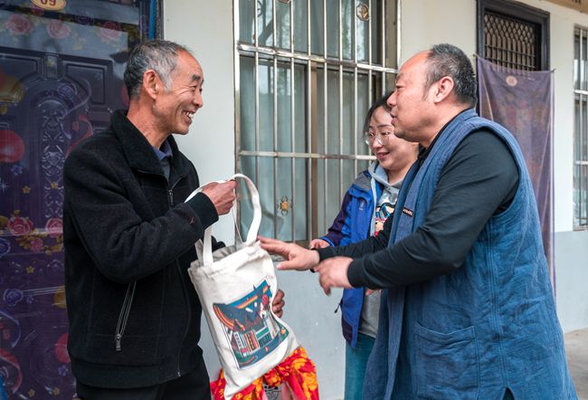 艺术学院院长董千向姚儿沟写生基地负责人杨贵林赠送译创礼品